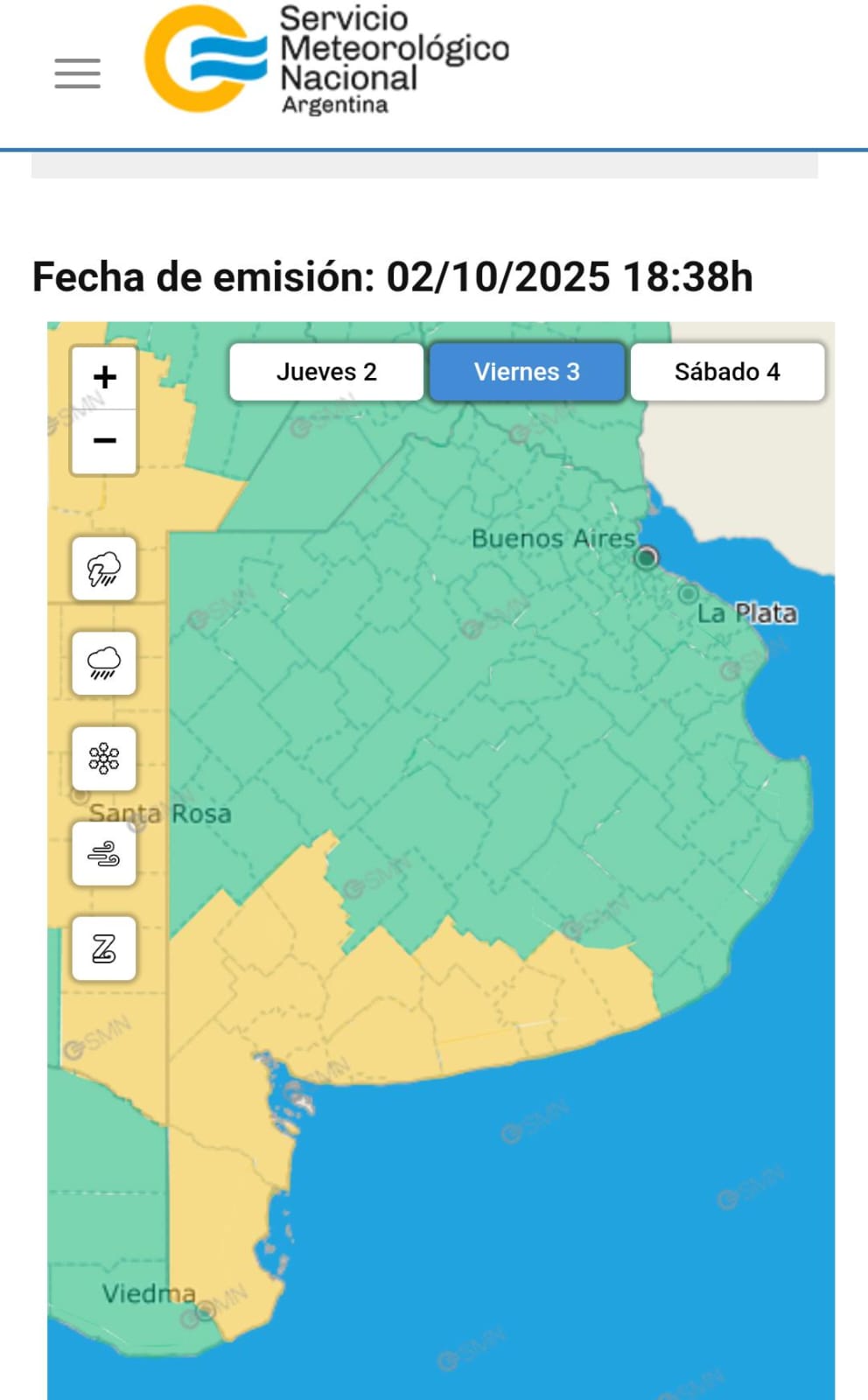 Por este motivo, el SMN emitió un alerta amarillo para el sudoeste provincial.