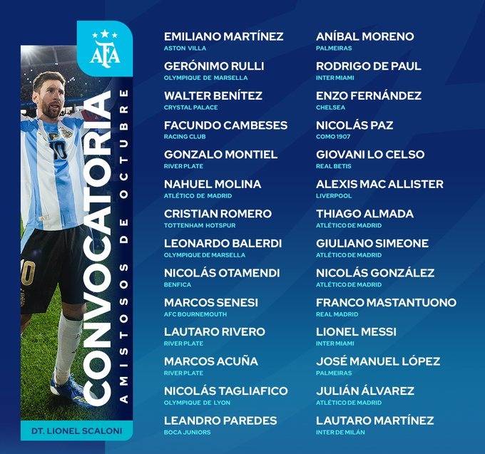Por otro lado, fuera de las novedades por los nuevos convocados, se sumaron a la nómina los regresos del mediocampista del Chelsea Enzo Fernández y el defensor del Bournemouth Marco Senesi, mientras que José López, la figura de Palmeiras, se mantuvo en la consideración del entrenador.