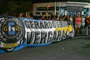 La familia de Gerardo «El Tifón» Vergara le dio color a la esquina de Charlone y Don Bosco desplegando una bandera del boxeador que participo del Circuito de Reyes.