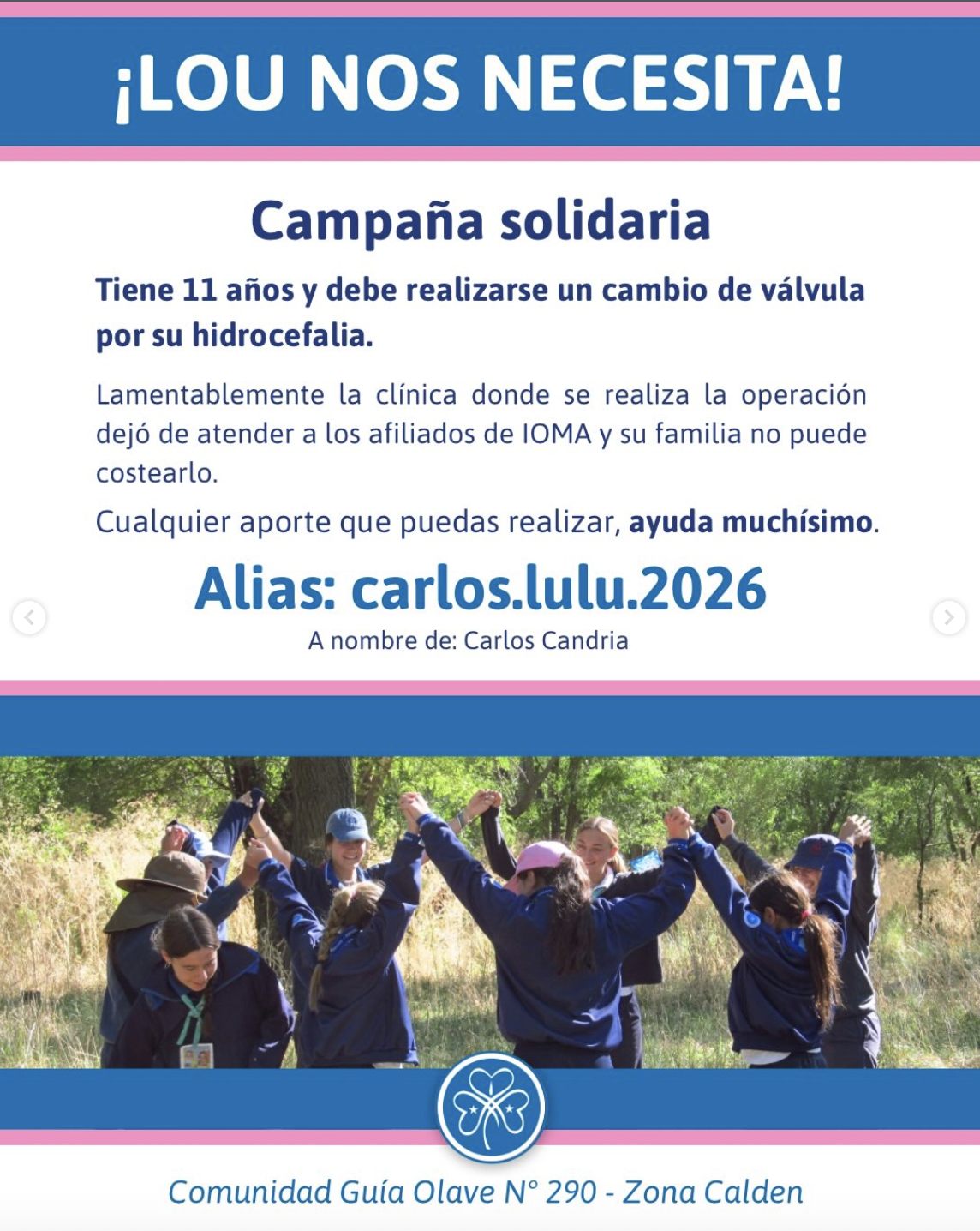 El alias para poder ayudar es: carlos.lulu.2026 a nombre de Carlos Candria.