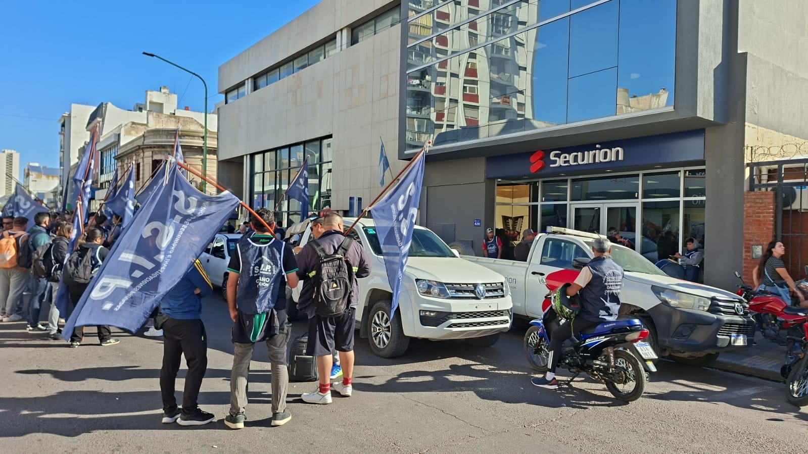 Desde esta mañana integrantes del sindicato del SSIP y trabajadores se están manifestando frente a una de las empresas de vigilancia de la ciudad ubicada en calle Chiclana, debido al despido de trabajadores.
